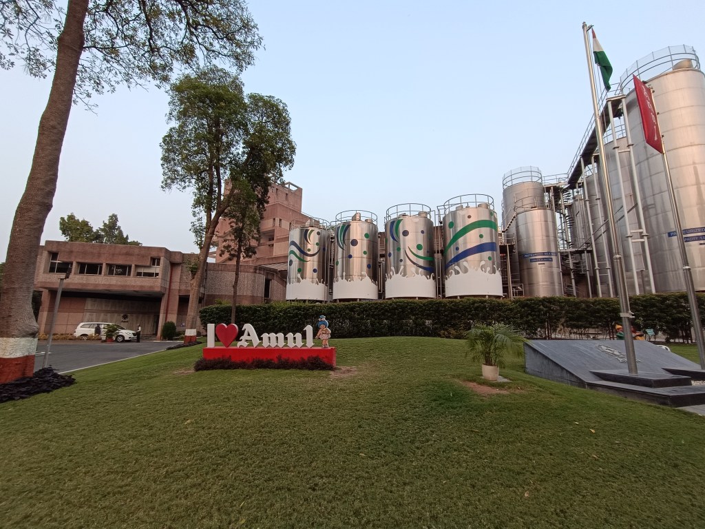 DAY 8 : We left for Anand at 9.30 am and reached in less than 2 hours. Here we stayed with our relatives, Shipra and Partha, who were wonderful hosts. Our day was choc-o-bloc with activities. After a sumptuous lunch, we left for the National Dairy Development Board Corporate office. In fact, Partha was the head of Corporate Communications for several years here. We learnt all about the NDDB activities in the country and this was an eye-opener for me. From there we drove to the Amul chocolate factory and this definitely reminded me of Willie Wonka’s Chocolate factory! Only, here we were not allowed too close to the chocolate churning machines. At the end of the visit, we got to pick some of the Amul products laid out on a tray for us. Our next visit was the Amul Dairy factory and we got a glimpse into the manufacturing of all the milk products. They also have health drinks (non-dairy) and cereals which I did not know about.