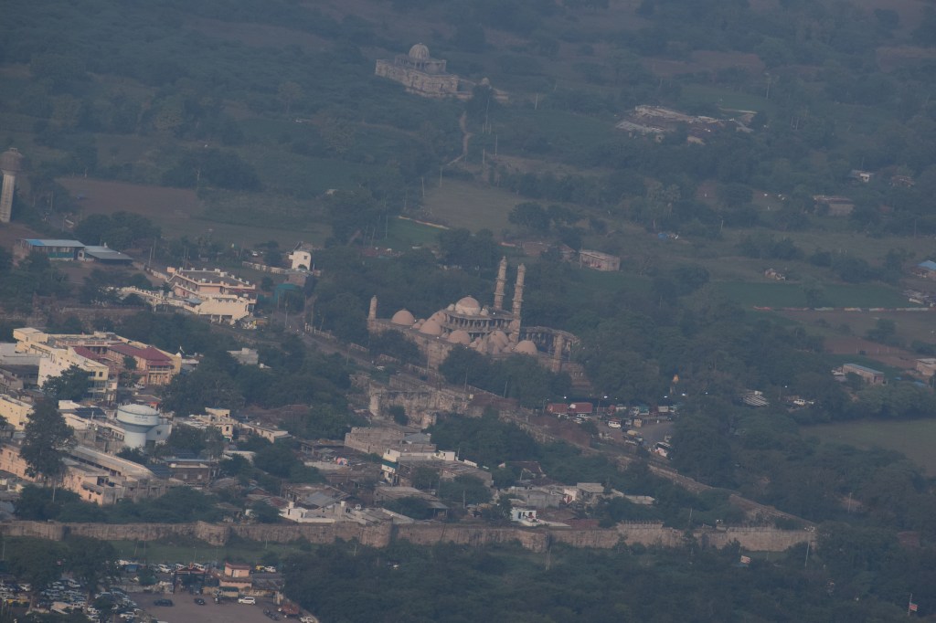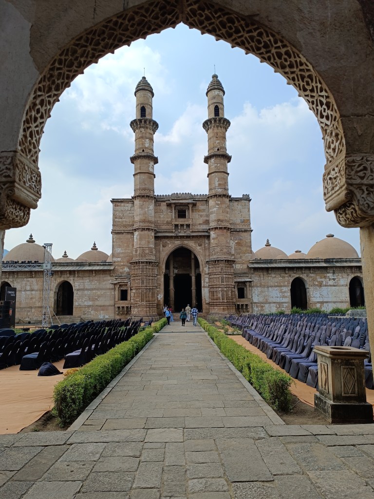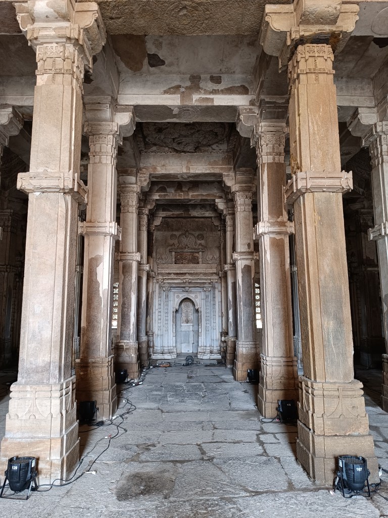 However, our next stop was quite riveting. An hour’s drive from Varodara lies the Champaner Pavagarh archaeological park, now a UNESCO heritage site. The town of Champaner is located amidst the Pavagarh hills which shows off a fortified wall running through the hills with bastions. Atop the hill stands the Kalika temple, a well-known pilgrimage spot. Within the once fortified area, we could see arches and wells, drainage system, huge entry gates (now in ruins), the Jami Masjid, Jain temples, palaces, the Lakulish temple. Outside this area lies the Kabutar Khana pavilion, (on Vada Talao, a beautiful lake), Khajuri masjid, Malik Sandal ki Vav, Hathi Khana and various maqbaras. The wonderful thing is, this area covers a history from the 8th century till the 16th century, seeing different rulers. We also got a bird’s eye view of it all from the ropeway.