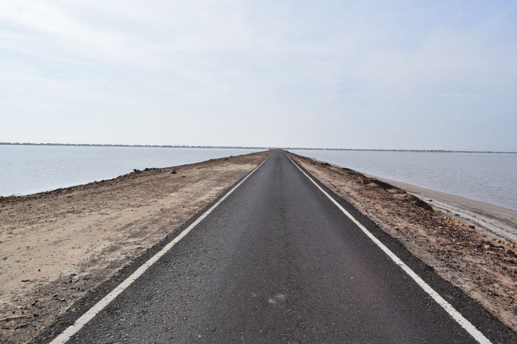 DAY 5 : I was going to visit another Harappan site that I have often dreamt of. We left for Dholavira at 8.20 am and the two-and-a-half-hour drive took us through one of the most scenic routes I have ever travelled on. For some distance we followed the route towards Dhordo, and then moved ahead. This picturesque road is called the Road to Heaven. During winters, as the sea recedes, this narrow road with salt and receding sea on either side becomes navigable. And this is no bridge but a natural path cutting through the sea. What a wonderful route to a 5000-year-old human settlement!